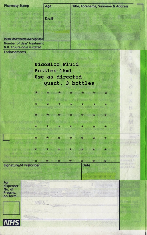 Although NicoBloc is availablre on the NHS, it depends whether the local Health Trust has authorised GPs and health professionals in their area to use their financial budget for this purpose.